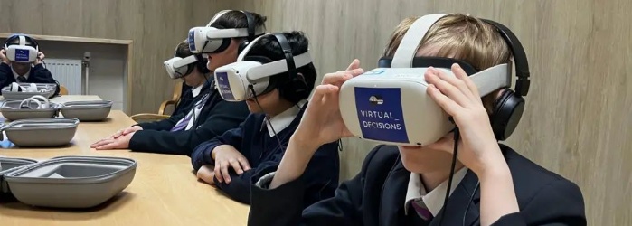 Our pupils used Virtual Reality (VR) headsets to navigate difficult, real-life scenarios involving peer pressure and knife crime. The simulation places students in a tense environment where they must choose whether or not to carry a blade.